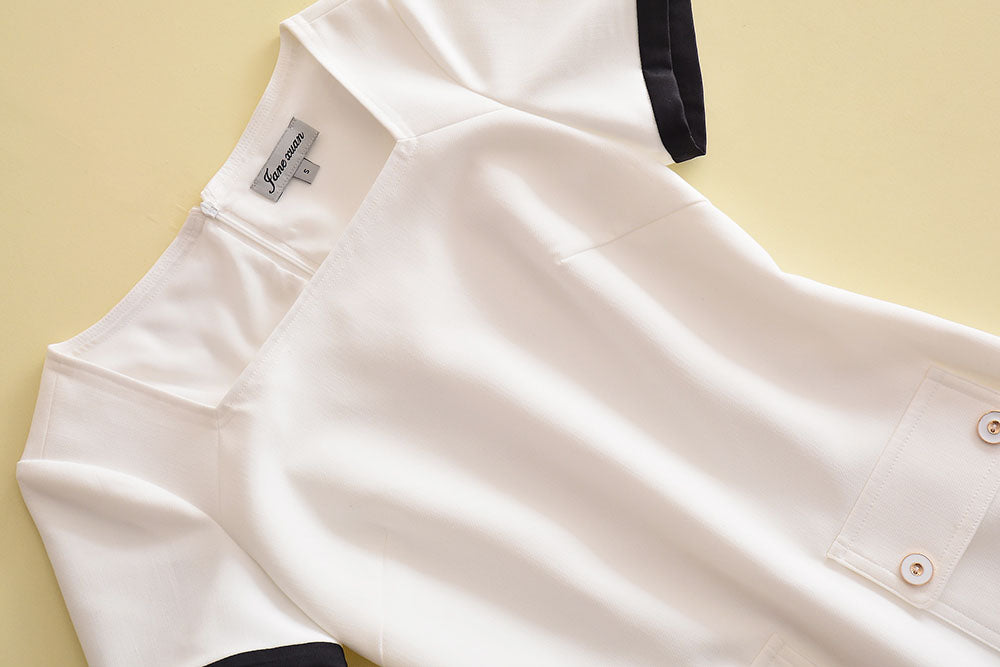 品牌: OYMP 材质: 棉 尺码: S M L XL 图案: 纯色 风格: 街头 街头: 欧美 领型: 一字领 腰型: 中腰 衣门襟: 拉链 颜色分类: 米白色 袖型: 常规 组合形式: 单件 货号: A03339 成分含量: 31%(含)-50%(含) 裙型: 铅笔裙 年份季节: 2019年秋季 袖长: 短袖 裙长: 短裙 款式: 其他/other