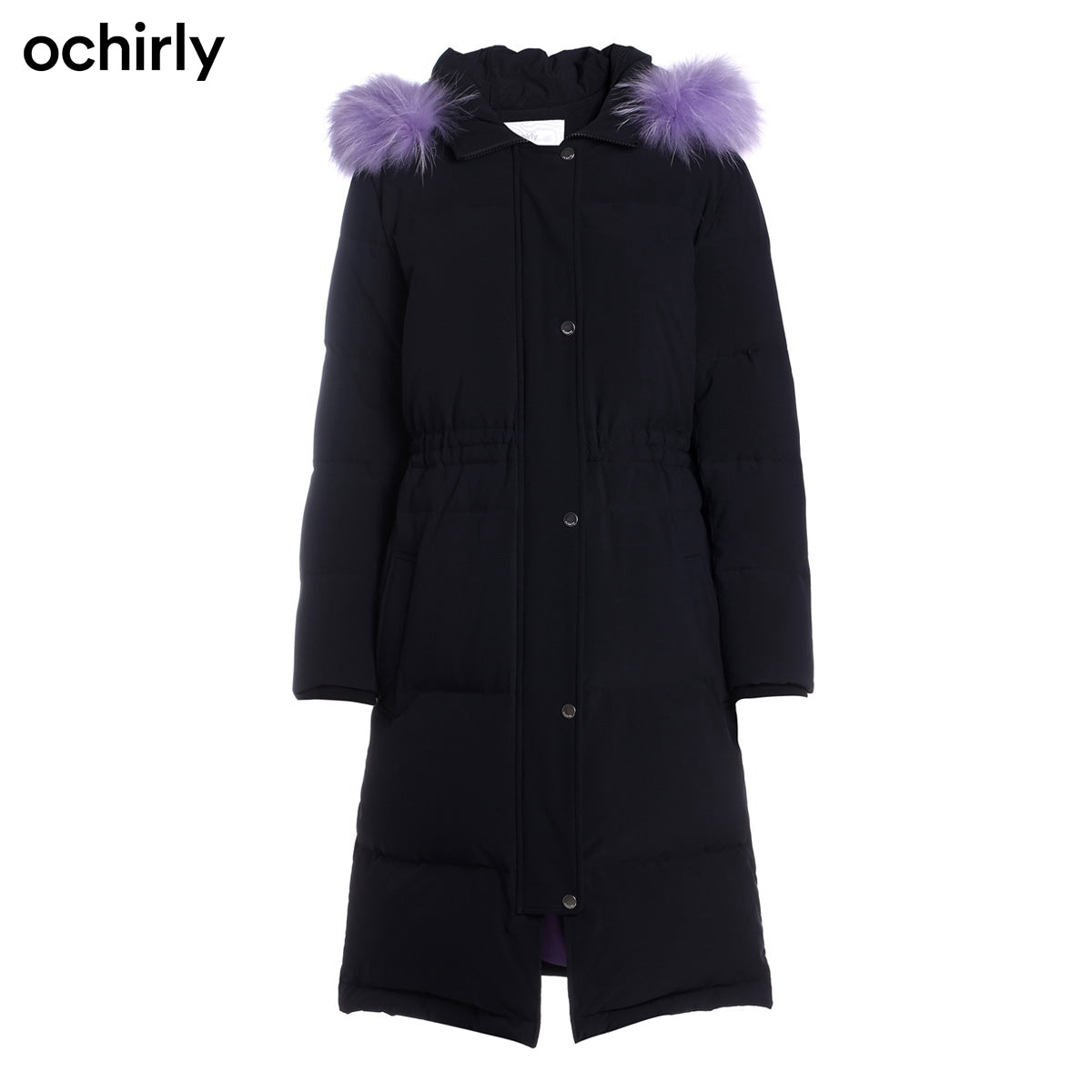 设计点:             可拆卸貉子毛领/修身腰间抽绳设计/甄选优质羽绒
